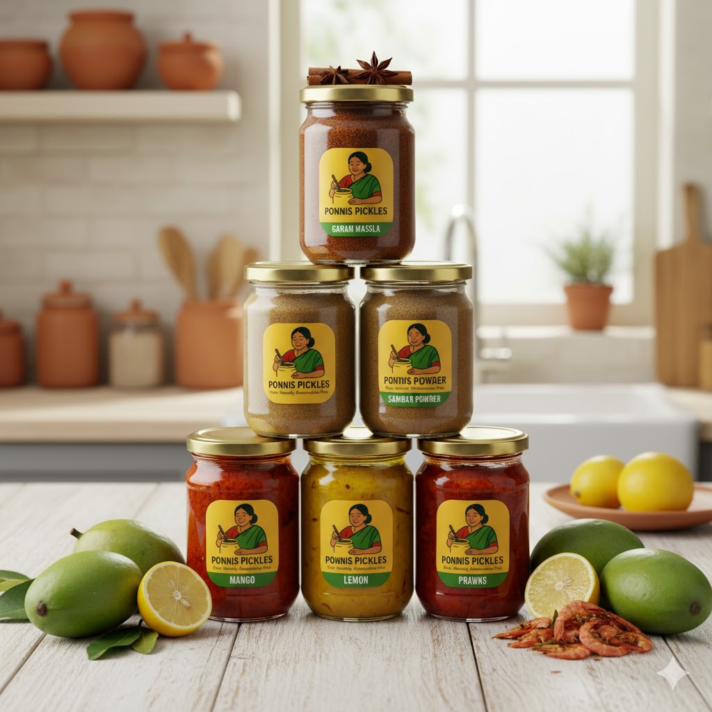 At Ponni’s Pickles, we present to you the very essence of home-made tradition through our range of carefully crafted pickles – Kerala pickles. Every single jar is made with authentic recipes, fresh ingredients, and tested methods for preserving flavour, aroma, and quality.